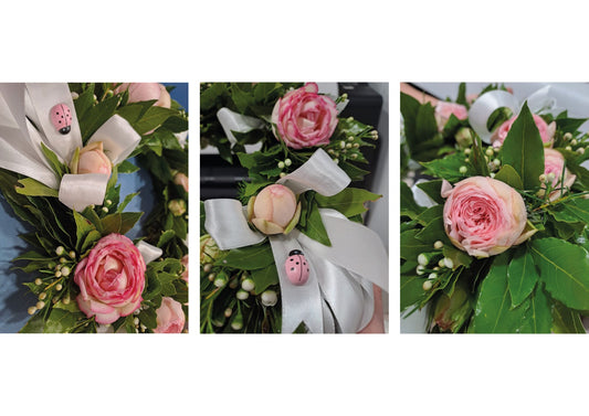 EsauritoCorona Rose Bianche, Bacche e Nastro